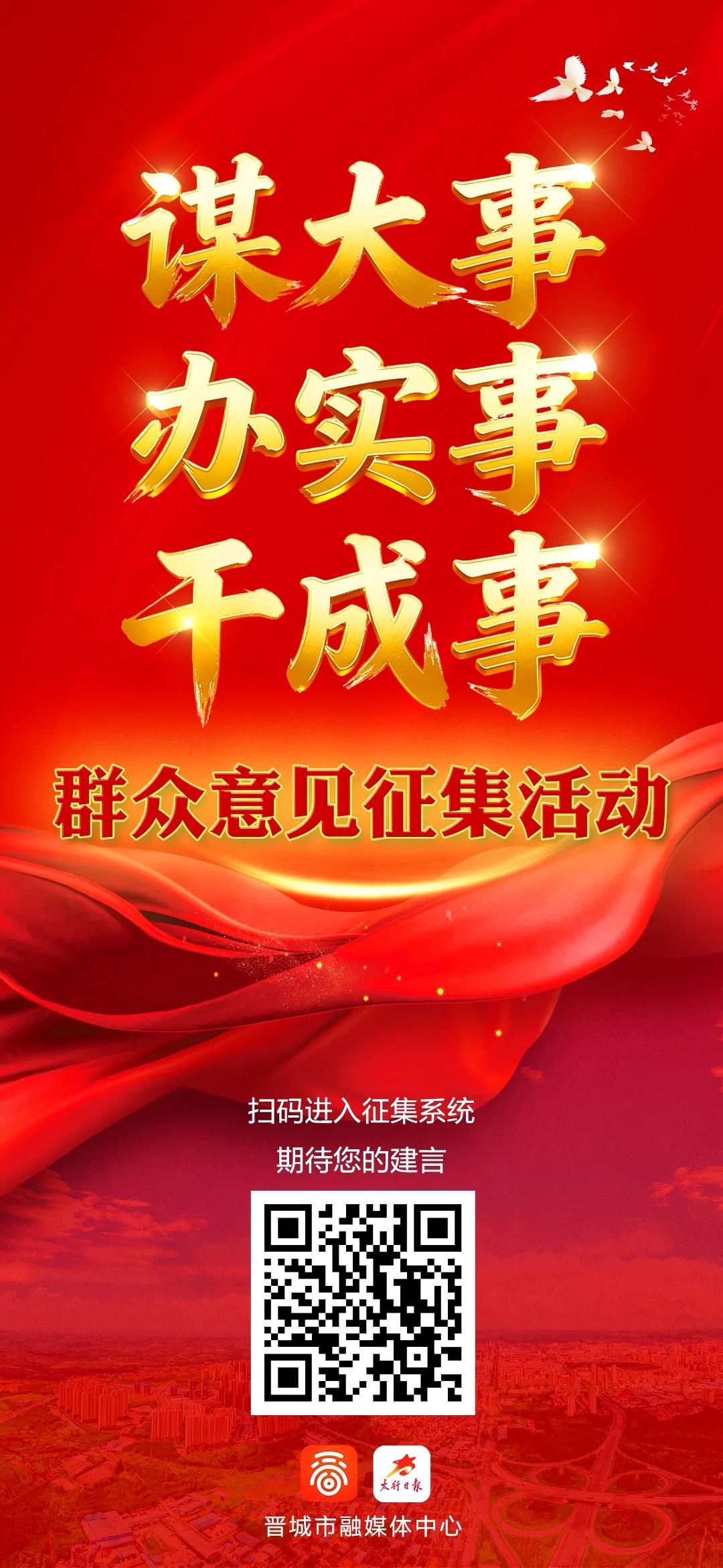 为深入贯彻习近平总书记对山西工作的重要讲话重要指示精神,全力推动中央和省委、市委关于“十五五”规划决策部署落地落实,确保“十五五”强势开局,取得成效。经市委研究,决定在全市开展奋进“十五五”“谋大事、办实事、干成事”群众意见征集活动。